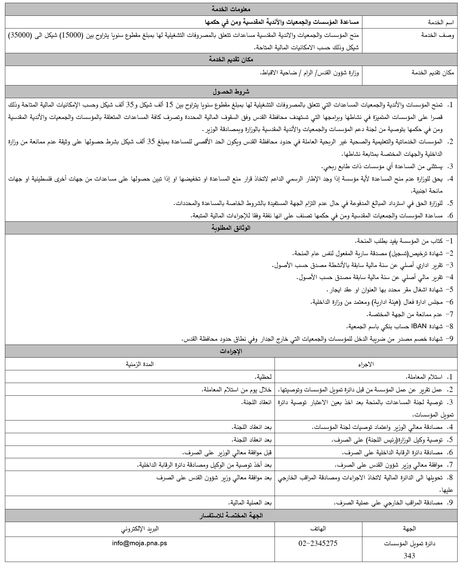 مساعدات المؤسسات والجمعيات والأندية المقدسية
